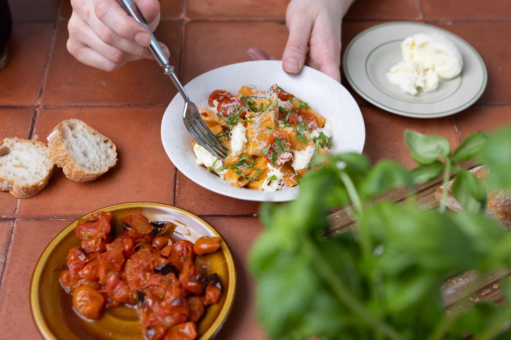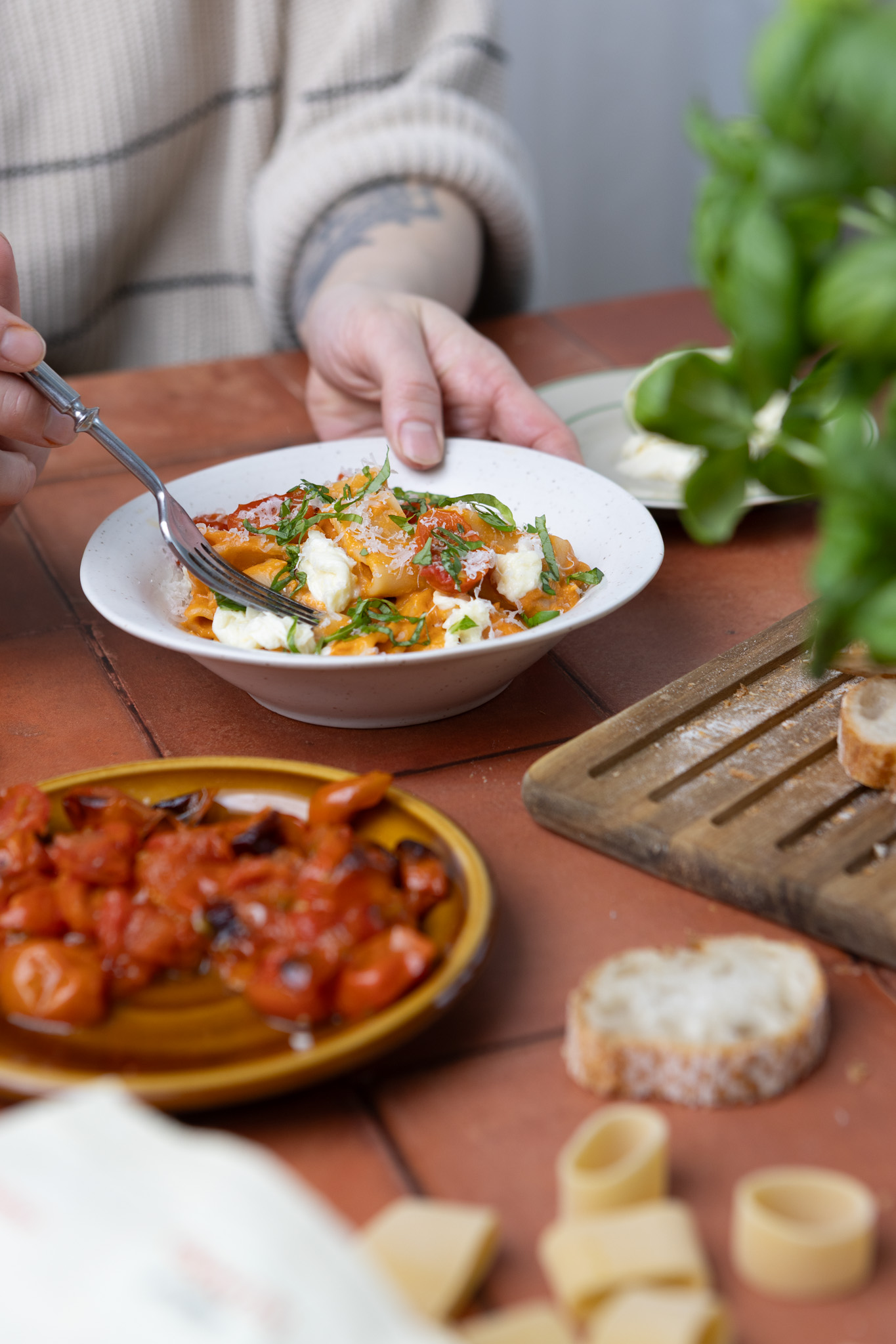 Joskus yksinkertainen on parasta, etenkin kun puhutaan pastasta. Helppo ja herkullinen tomaattipasta viimeistellään mozzarellalla, basilikalla ja kirsikkatomaateilla. Kastikkeeseen saa kätevästi myös ujutettua kuivahtaneet leivänkannikat.